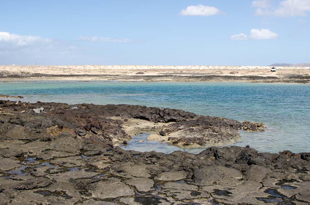 Die wunderschöne Lagune Caleta del Rio liegt vier Kilometer nördlich von El Cotillo. Die schöne Mischung aus schwarzem Lavagestein und weißem Sand umgeben von karger Wüstenlandschaft verleihen ihr einen besonderen Reiz.
