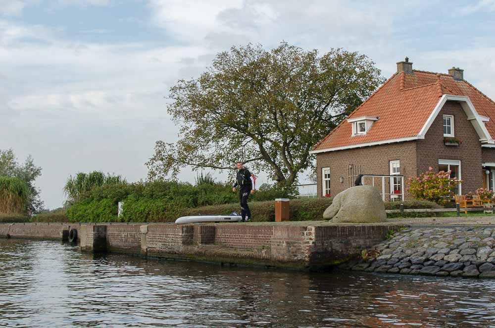 Nach nur 250 m biegst du wieder nach rechts in eine schmale Durchfahrt ab. Es geht wieder über einen kleinen See und eine schmale Durchfahrt, bis du die breite Wasserstraße Folkertsleat erreichst.
