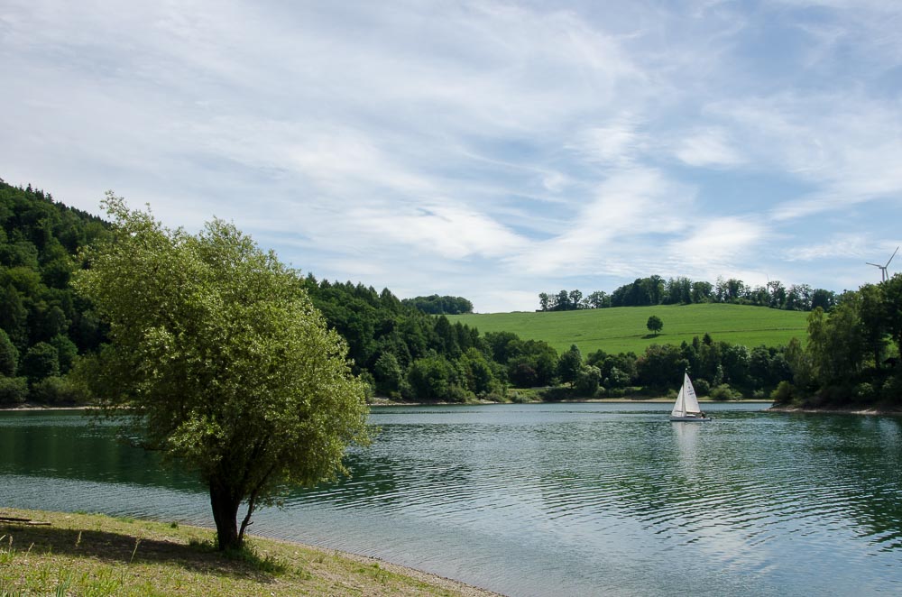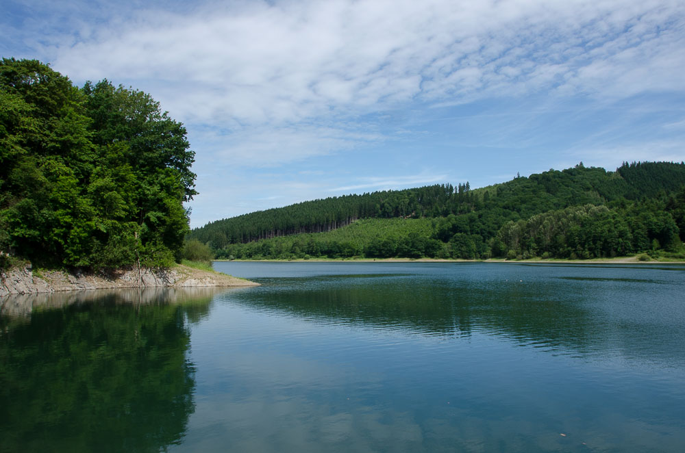 Die Hennetalsperre im Naturpark Homert staut das Wasser der Henne oberhalb von Meschede im Hochsauerlandkreis.