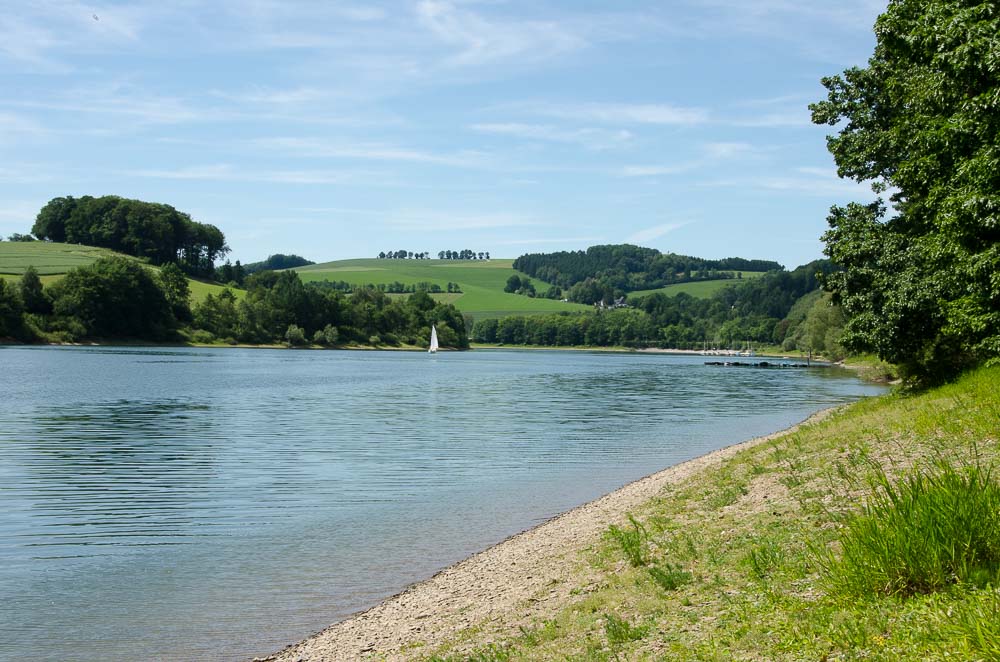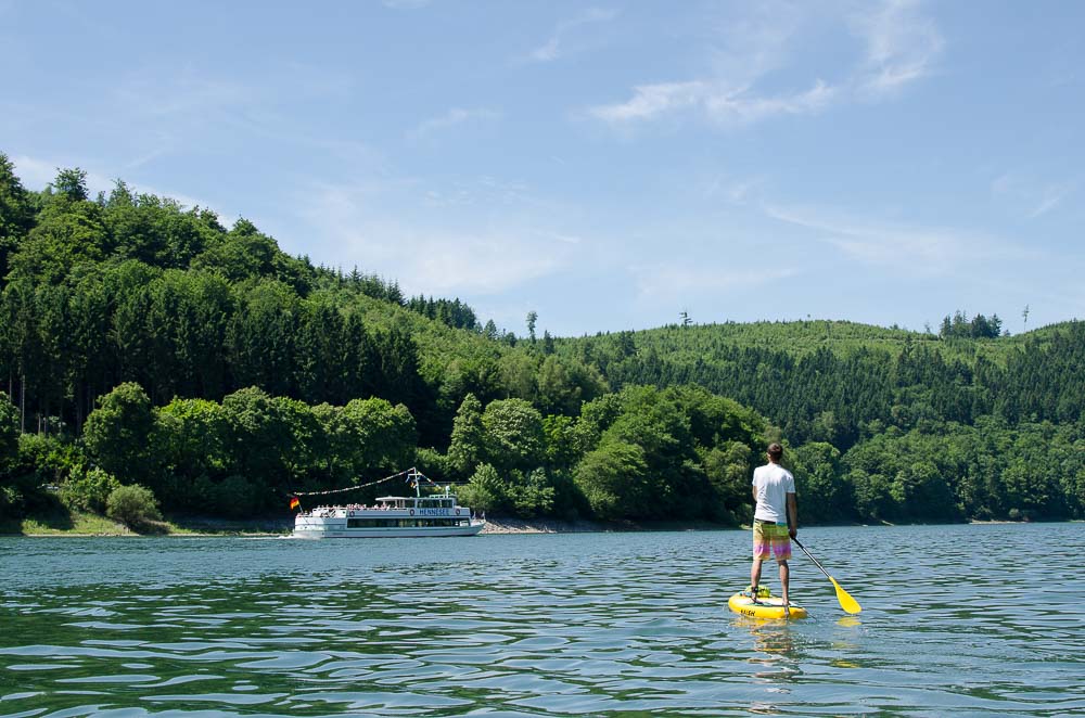 Berghauser Bucht – Einstieg über den Kiesstrand an der SUP Station Wassersport Hennesee