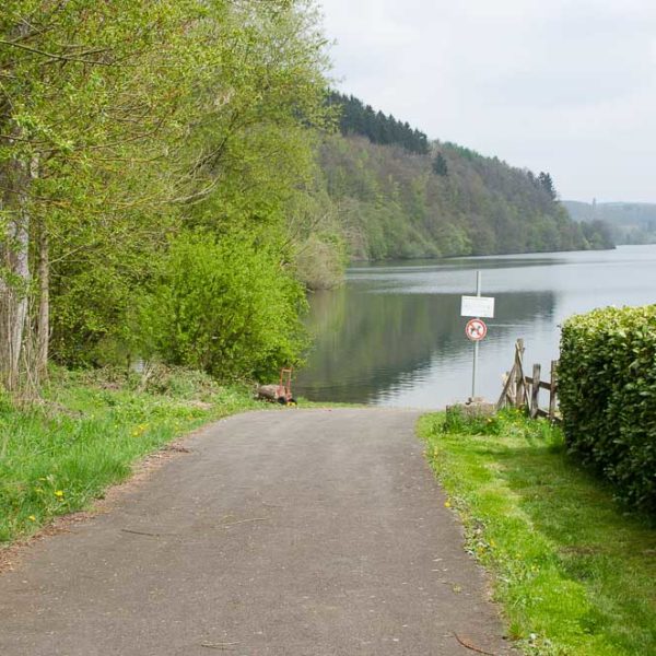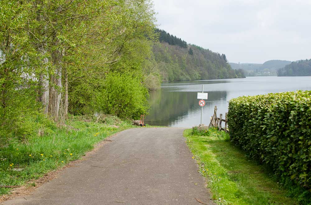Schotterparkplatz auf der gegenüberliegenden Straßenseite, ca. 120 m über einen schmalen Weg vom Parkplatz zur Straße und weiter zur Einstiegstelle, Seeuferstrasse in 58540 Meinerzhagen
